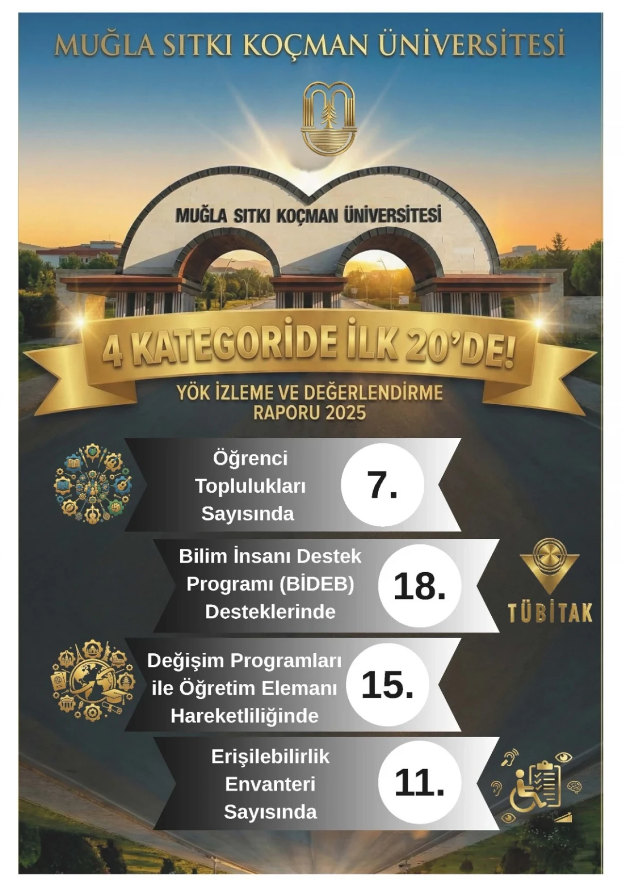 Muğla Sıtkı Koçman Üniversitesi (MSKÜ), YÖK’ün 2025 Yılı Üniversite İzleme ve Değerlendirme Raporunda 4 kategoride ilk 20’de yer almayı başardı.