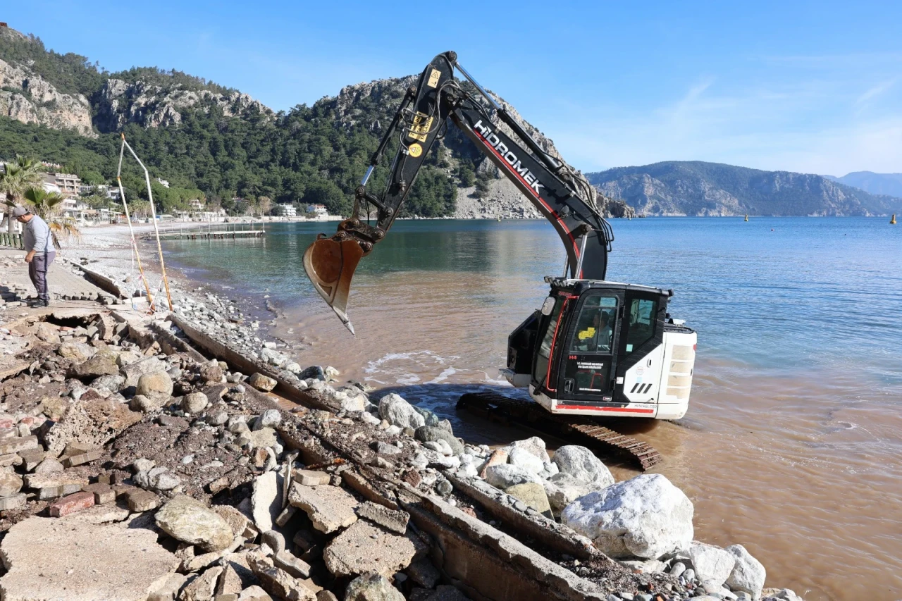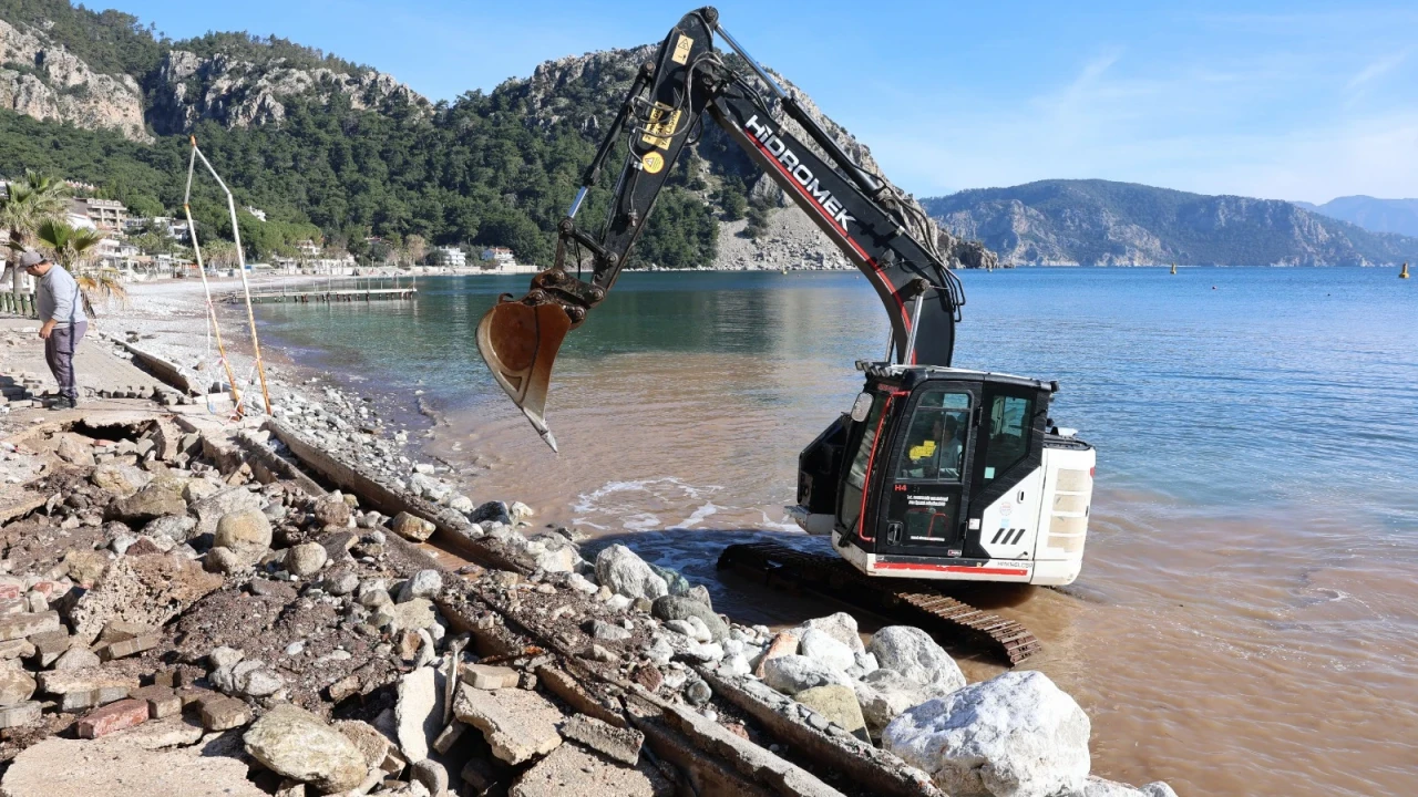 Olumsuz hava koşulları ve kuvvetli dalga hareketleri nedeniyle Turunç sahil yürüyüş yolunda meydana gelen hasarların giderilmesi için çalışmalar başlatıldı.